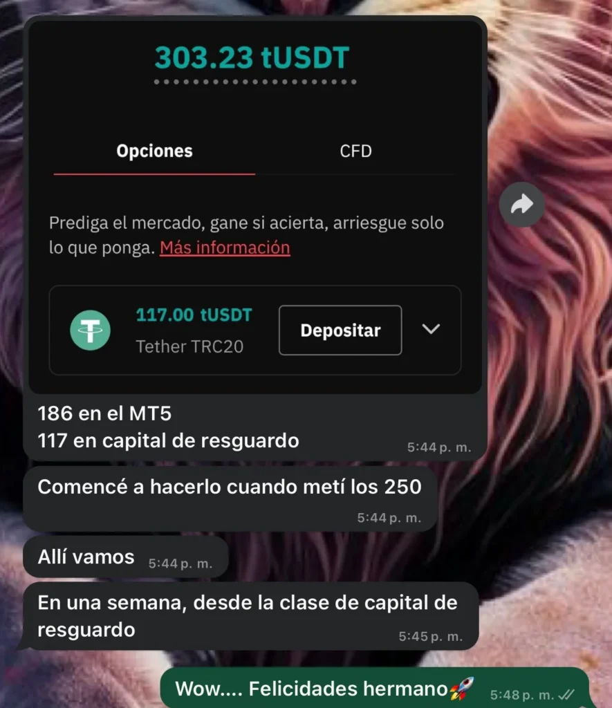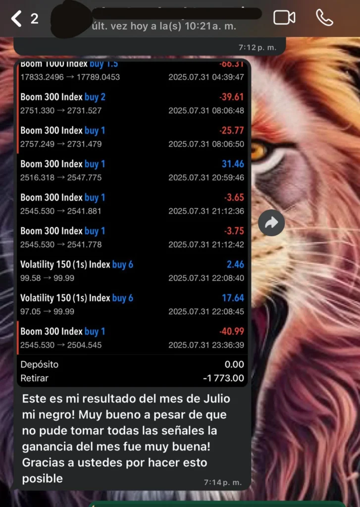 Únete a nuestro grupo de WhatsApp para enseñarte paso a paso cómo lo hacemos con nuestro sistema comprobado que combina educación, herramientas automatizadas y el respaldo de expertos en trading. Y puedes tener acceso al mismo sistema con inversiones mínimas desde $300.